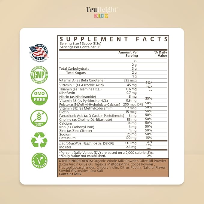 - Boosting Immunity and Digestion: TruHeight's unique formula combines Inulin, a prebiotic fiber sourced from chicory root, and Lactobacillus Rhamnosus, a powerful probiotic strain. Together, they support gut health, boost immunity, and promote digestive well-being, helping protect your little one from common illnesses.*
