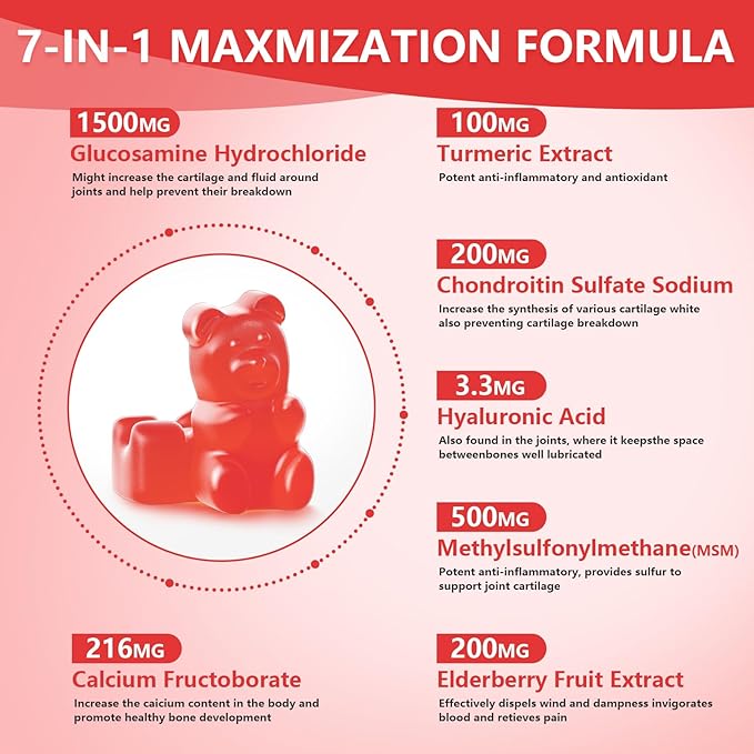 - DELICIOUS AND EASY TO TAKE - Swallowing pills is a chore, and the delicious glucosamine chondroitin gummies are undoubtedly an excellent substitute, based on pectin, with a pleasant raspberry flavor, pleasant taste, easy to chew, and non-stick. These cuddly bears are tasty and nutritious and can help you stay active and supplement a healthy lifestyle!