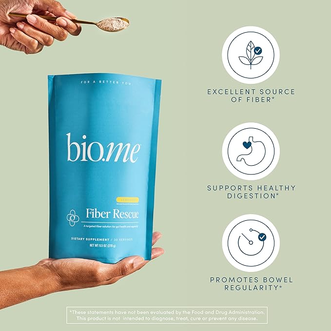 - SUPPORTS GUT HEALTH FOR WOMEN AND MEN: Bio.me's Fiber Rescue, a beneficial soluble and insoluble prebiotic fiber for women and men, leverages the power of psyllium husk fiber to support gut health, improve regularity, provide constipation relief, and enhance feelings of fullness between meals.*