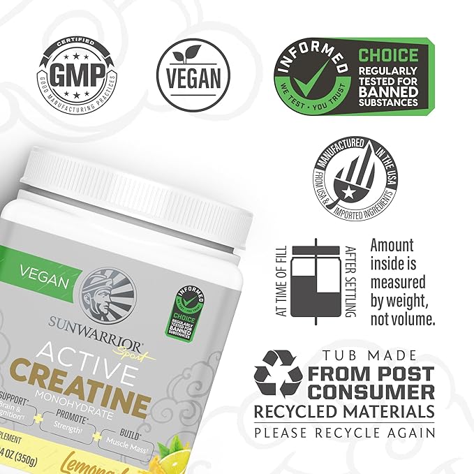 Creatine Monohydrate Powder Micronized PreWorkout Recovery Supplement | Support Muscle Building Strength Training Cognition | Vegan & Keto Friendly, Easily Mixes (50 Servings) Lemonade Active Creatine