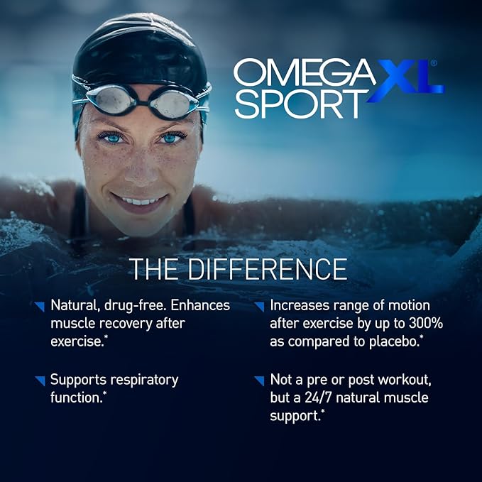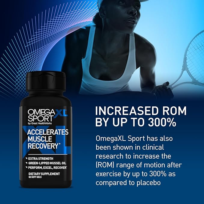 - PERFORM EXCEL RECOVER - OmegaXL Sport has been shown to enhance post-workout muscle recovery and support respiratory function. It has also been shown in clinical research to increase the (ROM) range of motion after exercise by up to 300% and participants showed a reduction in muscle pain and muscle damage after intense exercise. Participants took OXL Sport as suggested (2 soft gels daily) for 4 weeks before being subjected to strenuous exercise and results were assessed post-exercise.