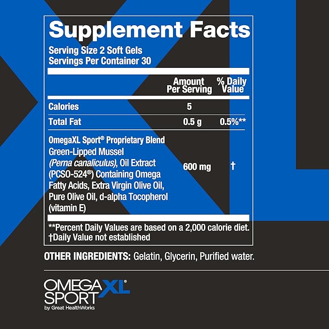 - CONSISTANT RECOVERY - Consistency is key to maximizing the benefits of OmegaXL Sport. That’s why we recommend that you take 2 soft gels daily for at least 4 weeks. Perform Excel Recover Repeat.