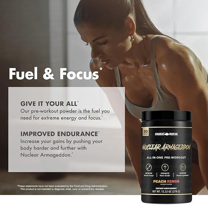 - High Powered Pre-workout* : Nuclear Armageddon is a potent pre-workout for both men and women. Its comprehensive blend is packed with 14 of the best ingredients on the planet that support enhanced performance, massive pumps, increased strength, razor sharp focus, thermogenesis, increased energy and muscle hypertrophy while training.*
