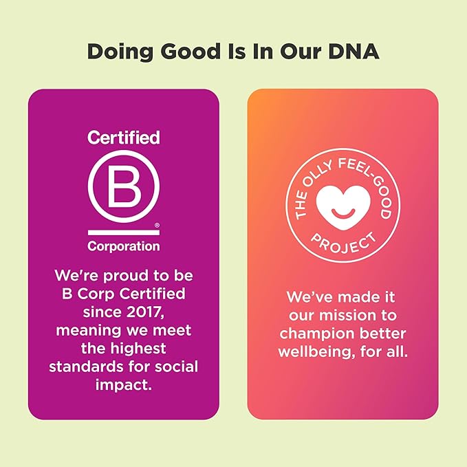 - OLLY PLANT-POWERED CHILL: This soothing adaptogen blend of herbs supports a healthy stress response and an upbeat mood.*
