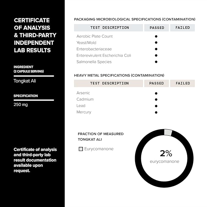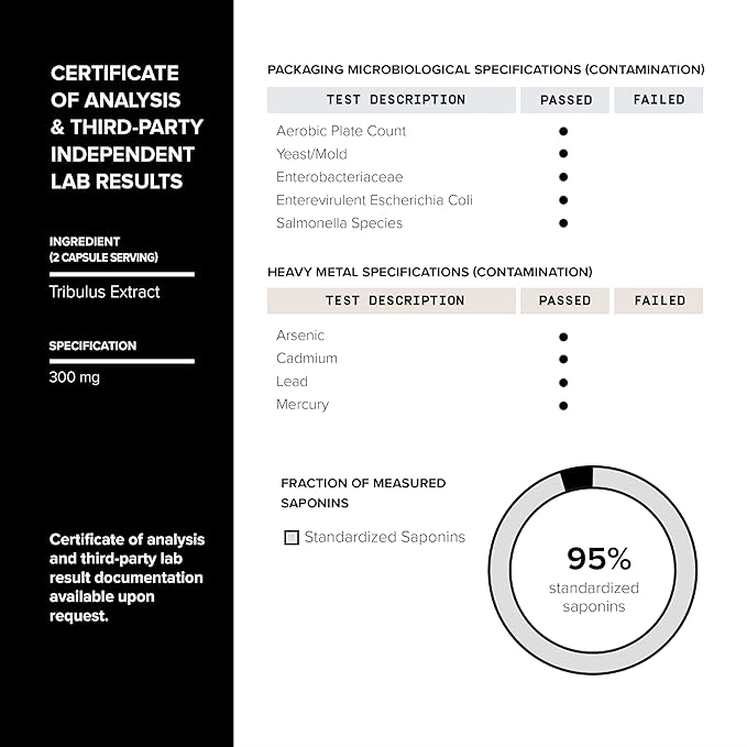 - Revolutionize Your Vigor and Vitality: Unleash your full potential with our groundbreaking blend. Featuring an unparalleled 25:1 Tribulus extract (boasting a remarkable 95% saponins), along with an ultra-concentrated 30:1 Fadogia extract, our potent 200:1 Tongkat Ali (rich in 2% eurycomanone), and a powerful 40:1 Ashwagandha extract (loaded with 25% withanolides). This is not just a supplement; it's a game-changer for your daily routine.