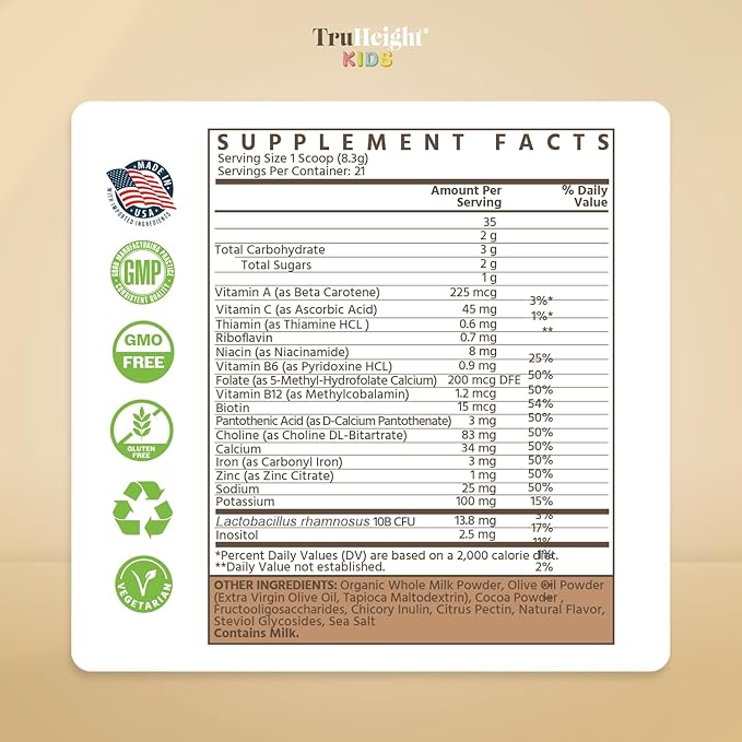 - Boosting Immunity and Digestion: TruHeight's unique formula combines Inulin, a prebiotic fiber sourced from chicory root, and Lactobacillus Rhamnosus, a powerful probiotic strain. Together, they support gut health, boost immunity, and promote digestive well-being, helping protect your little one from common illnesses.*
