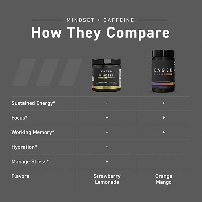- IMPROVED MOOD*: L-Phenylalanine, an essential amino acid, helps to improve mood and reduce stress, making Kaged Mindset the perfect supplement for those who want to stay focused and productive all day. The ingredients in Mindset work by crossing the blood-brain barrier to support neurotransmitters and improve working memory to support your productivity.*