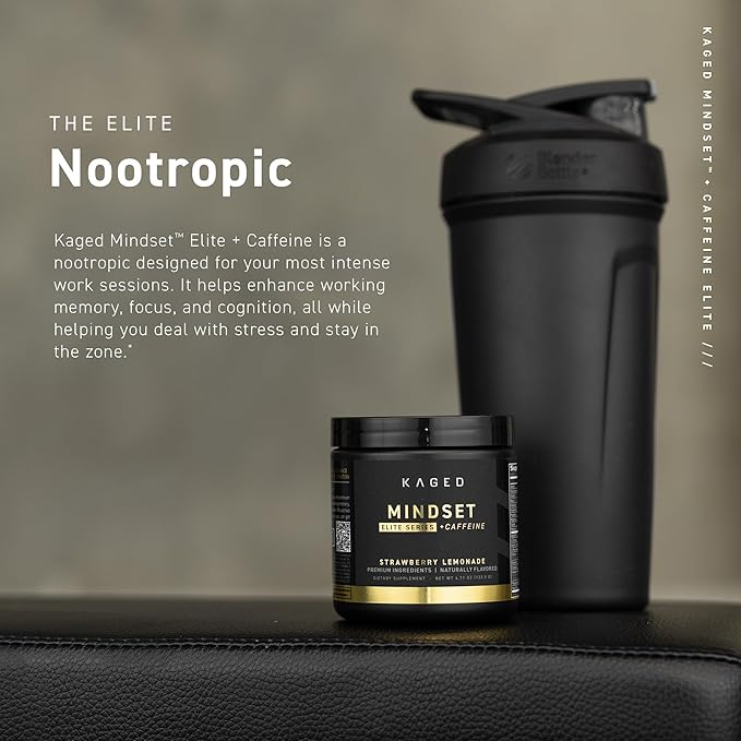 Kaged Nootropic Mindset Elite | Focus and Productivity Supplement | Organic Caffeine | Supports Working Memory, Focus, Energy, and Mood* | Strawberry Lemonade - 30 Servings