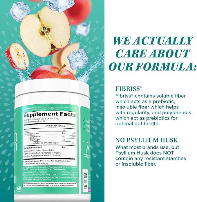 - Optimize Gut Health - Try our soluble and insoluble fiber supplement for women and see how patented Fibriss can support bloating and constipation relief for women to help you look and feel lighter