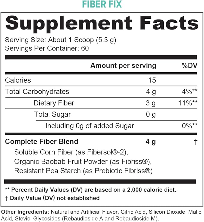 - Clean Supplement - We are proud to offer Fiber Fix - a delicious gut health powder for women made without any sugar caffeine stimulants GMOs or psyllium husk made in American cGMP facilities