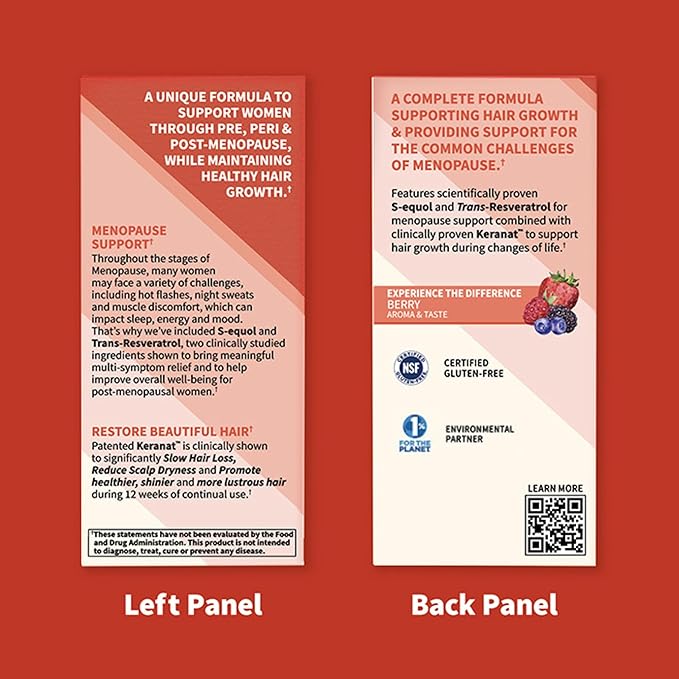 Garden of Life Herbals Menopause Supplement with S-equol & Trans-Resveratrol for Multi-Symptom Relief, Keranat for Thicker, Fuller Hair Growth – Non-GMO, Gluten-Free, Vegan, Berry Flavor, 30 Servings