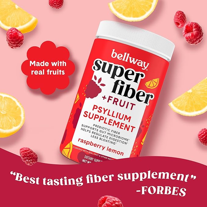 Bellway Super Fiber Powder + Fruit (3 Pack), Sugar Free Organic Psyllium Husk Powder Fiber Supplement for Regularity, Bloating Relief & Gut Health, Non-GMO, Plant-Based, Raspberry Lemon (150 Servings)