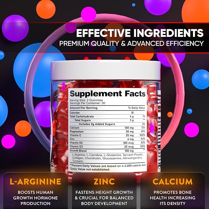- Unlock your height potential- Achieve your dream height with our growth supplement, a gluten-free formula designed to boost bone growth and increase height. Maximize your growth potential with our height enhancer pills, packed with essential vitamins and minerals to support bone growth. Support your growth with our height gummies for kids, teens and adults. The blend contains perfectly balanced ingredients. Get healthy bone growth & strength with our natural product.