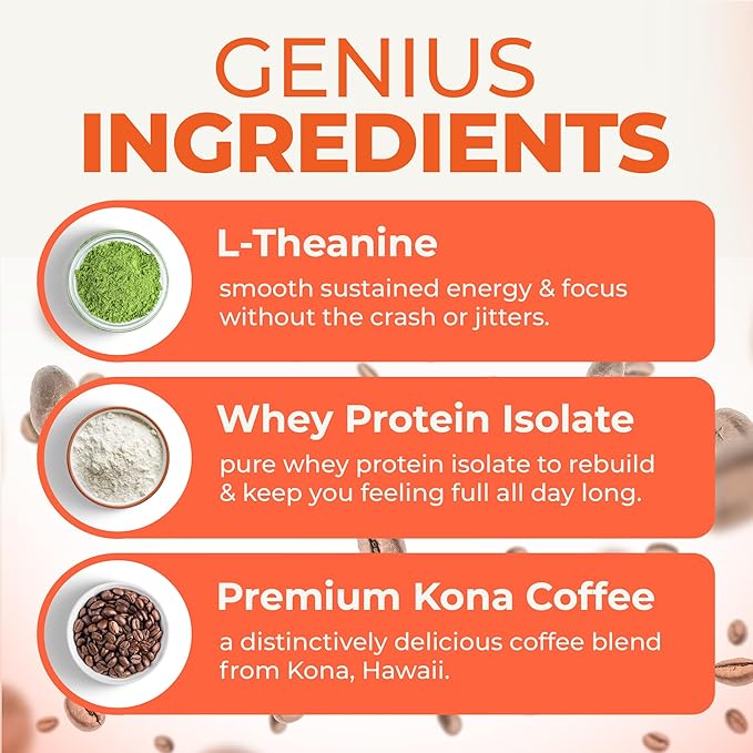 - Focused Energy All Day: Harness the synergy of theanine and caffeine in our high protein whey isolate coffee for a smooth energy boost without jitters; this perfect balance enhances mental clarity and focus, making it an ideal beverage for those pursuing productivity and wellness goals. Elevate your routine with protein instant coffee while staying alert and energized throughout your day.