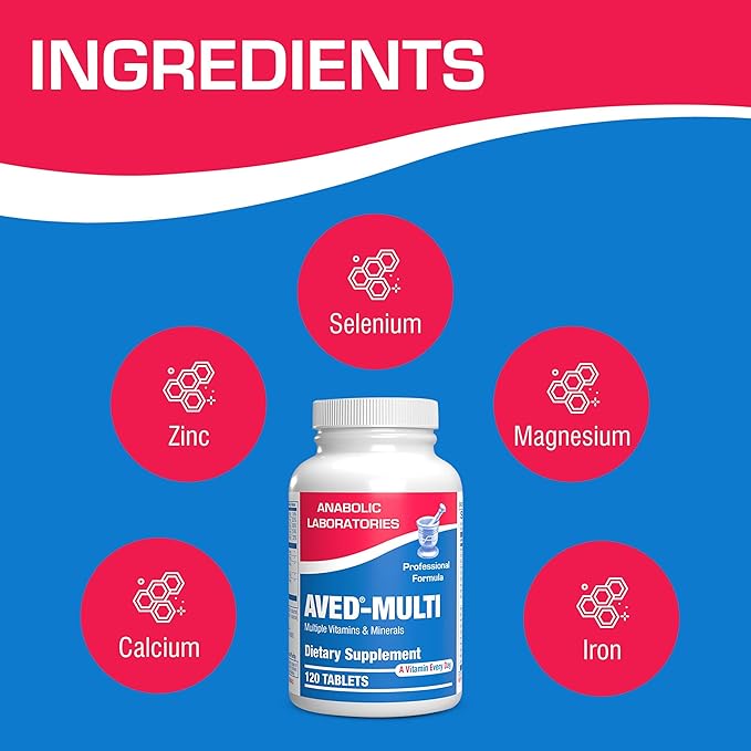 Anabolic Laboratories Daily Multivitamin for Men and Women - 120 AVED Daily Multi Vitamin and Minerals Supplement Tablets with Iron for Daily Health