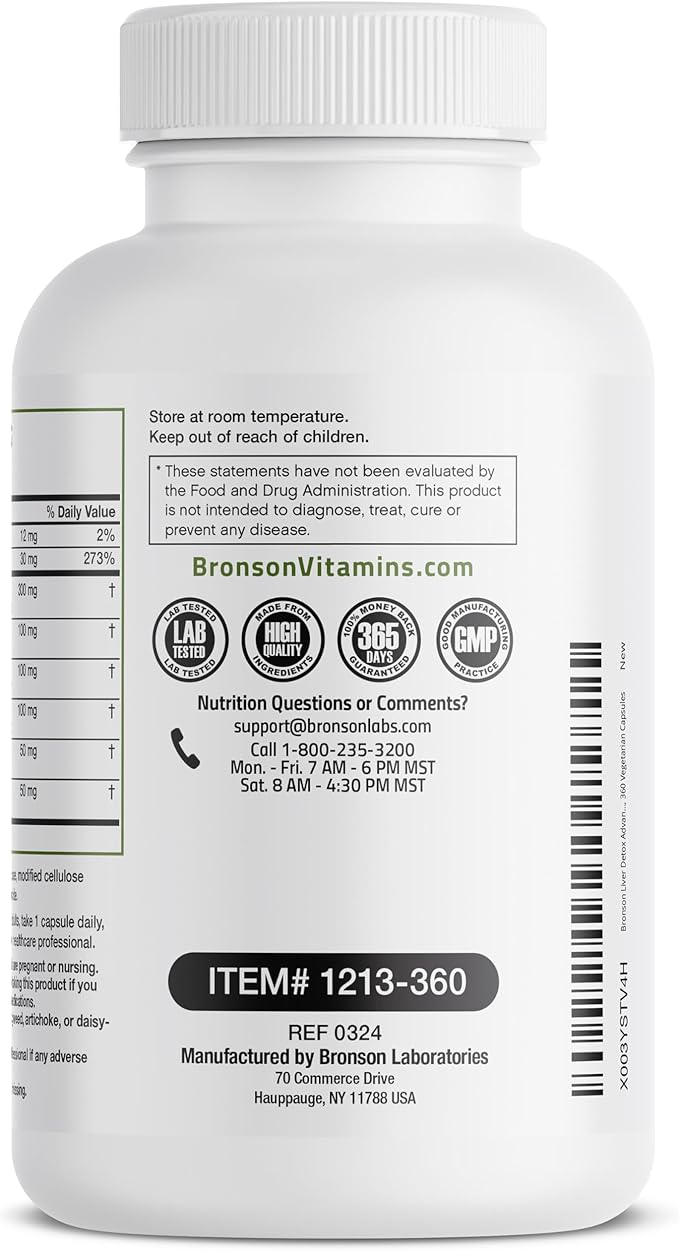 - Advanced Liver Support*: Bronson Liver Detox provides premium ingredients that work synergistically to support healthy liver function.* Our advanced detox and cleanse formula provides Milk Thistle, Dandelion Root, Turmeric, Artichoke Leaf, Beet Root, and more for superior support.*