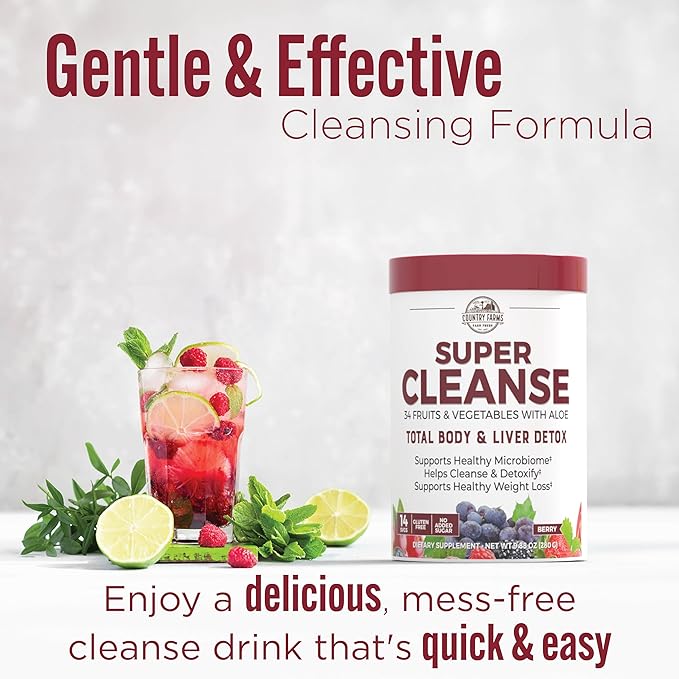 - GENTLE & EFFECTIVE CLEANSING FORMULA. Thanks to Country Farms Super Cleanse, you can enjoy a tasty, mess-free cleansing drink that only takes a few minutes to prepare – at a fraction of the cost of other products on the market. It’s both gentle and effective!