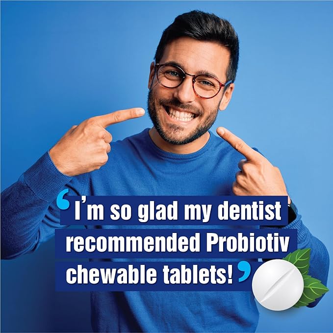 - Made in USA – Natural mint flavor chewable tablets without gluten, dairy, GMO, artificial colors or added sugar. Make Probiotiv a part of your daily routine for fresher breath and a more confident smile with our oral probiotics for mouth health!