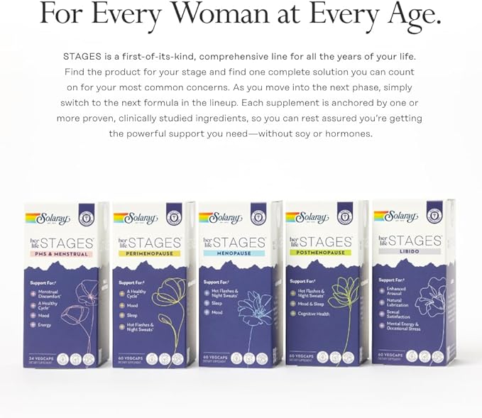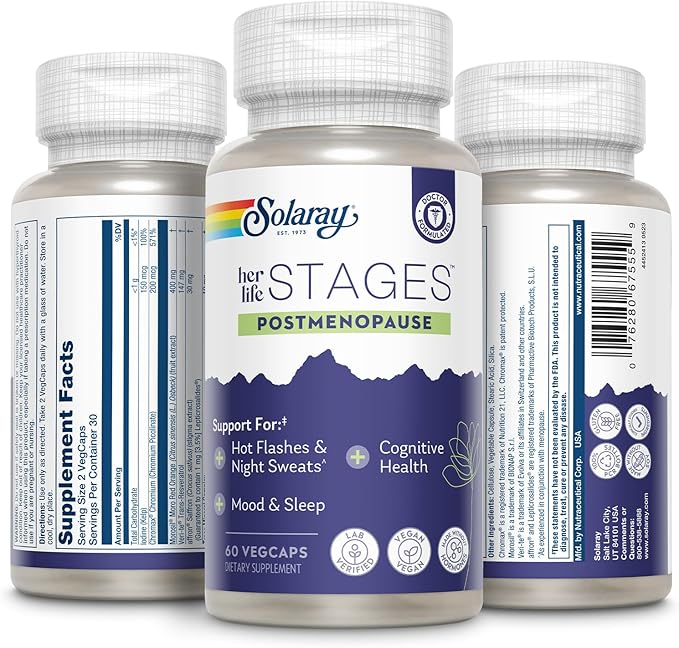 Solaray Postmenopause her Life Stages - Post Menopause Supplements for Women with Resveratrol - Vegan and Made Without Hormones - 60-Day Guarantee - Vegan, Lab Verified - 30 Servings, 60 VegCaps