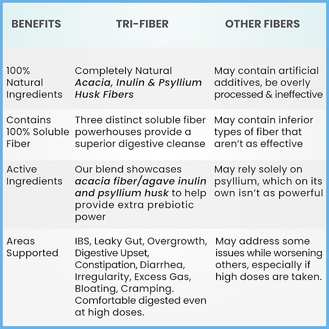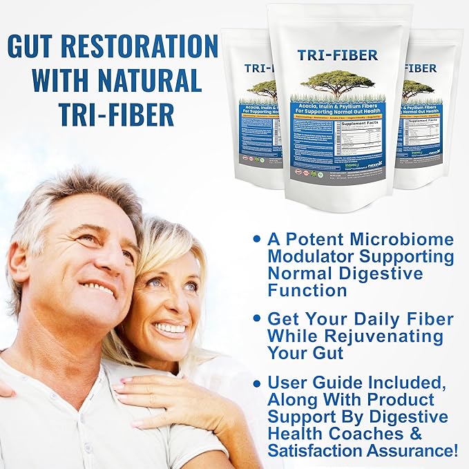 - Our Tri-Fiber 2-pack combines three scientifically-proven natural fiber powders: Acacia Fiber, Agave Inulin Fiber, and Psyllium Husk Fiber, all of which play vital roles in sustaining healthy gut function. Whether you're grappling with issues like gas, bloating, frequent restroom visits, or digestive discomfort associated with conditions such as IBS, IBD, or leaky gut, Tri-Fiber 2-pack is your solution for transformative digestive health.