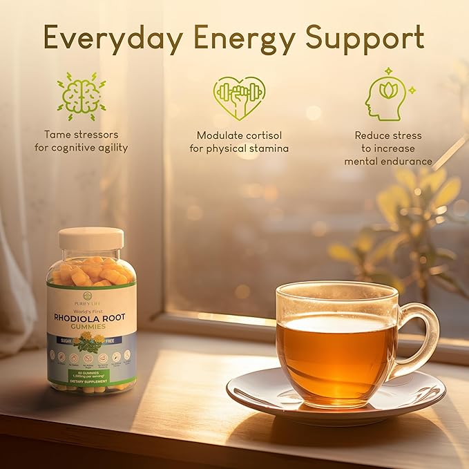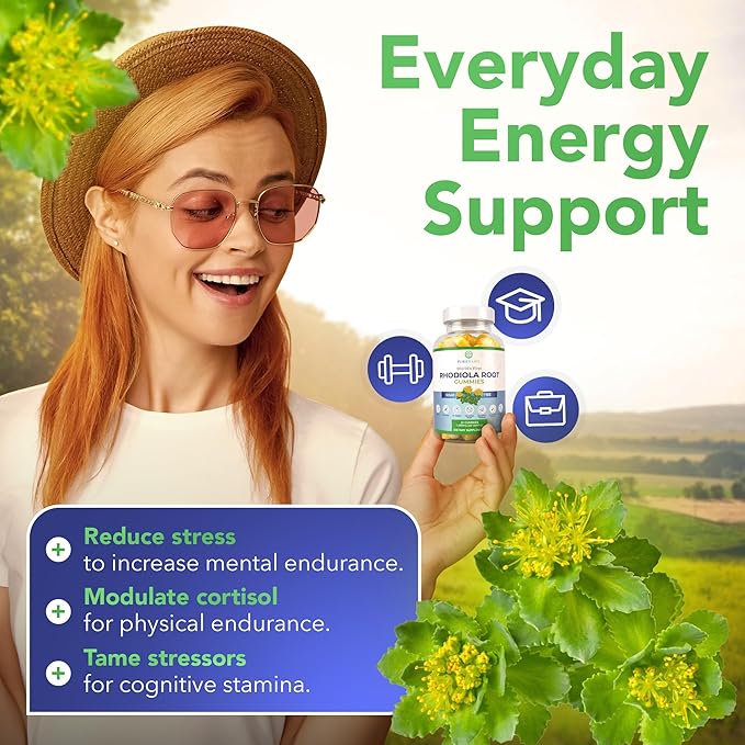 - [Wave Goodbye to Daily Slumps] - Not just for the mind, Rhodiola-Rosea can also support increased stamina and energy levels. Elevate your physical performance with Purify Life's Rhodiola Gummies, making it a trusted ally for workouts and busy schedules. Harness the power of our cortisol manager, let your energy fly, and feel good doing it!