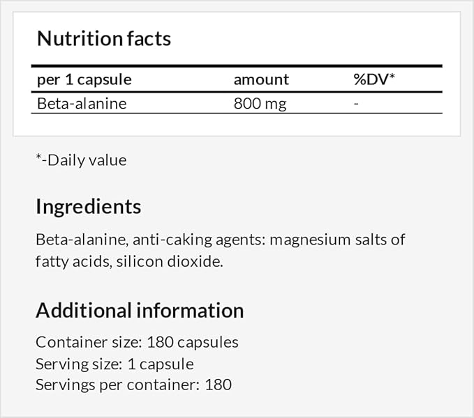 Beta Alanine 800 mg pro Capsule - 180 Vegan Capsules - 2 Months Supply - Amino Acid Supplement for Enhanced Athletic Performance - by MZ
