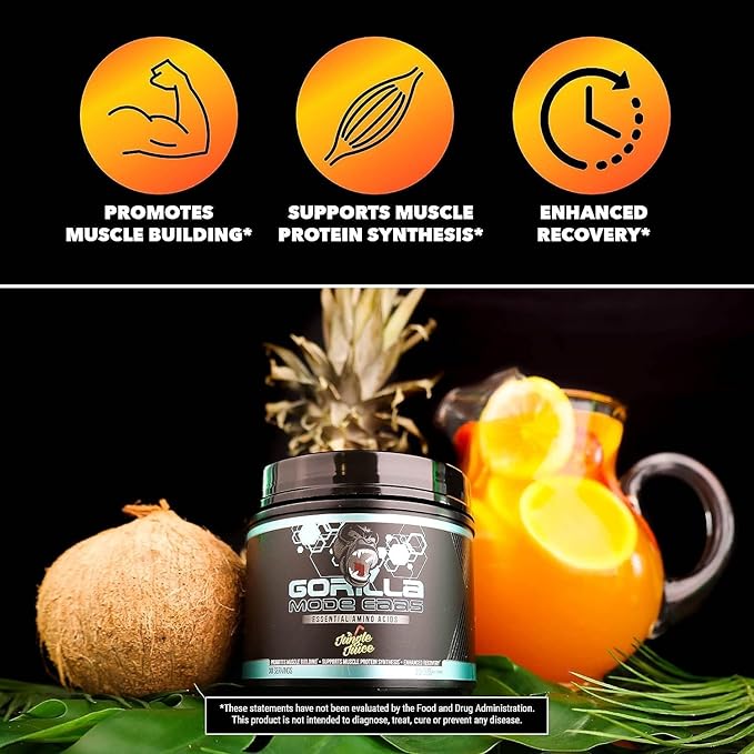 - ALL NINE ESSENTIAL AMINO ACIDS - Essential Amino Acids (EAAs) are not produced in the body endogenously and therefore need to be ingested via diet or supplementation. Gorilla Mode EAAs ensures you reach the optimal amount of EAAs to reduce muscle degradation.