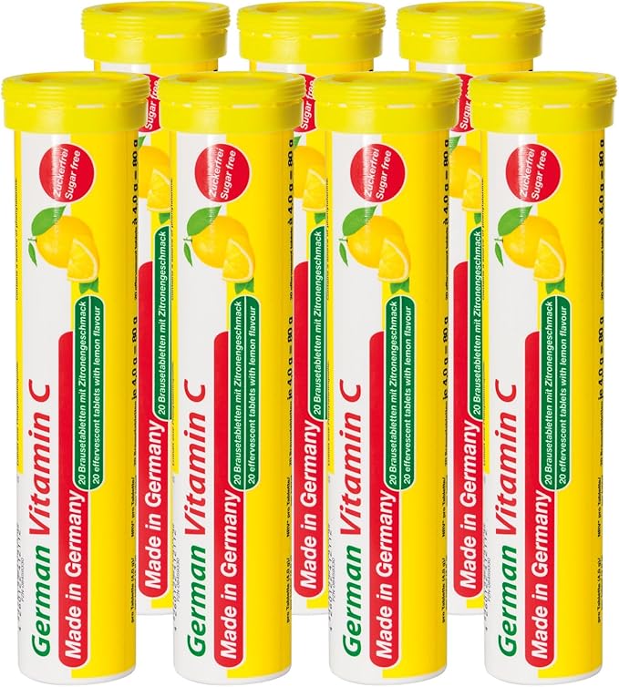 T&D German Vitamin C 180 mg - 140 Vegan Drink Effervescent Tablets - Lemon Lime Flavor - Made in Germany