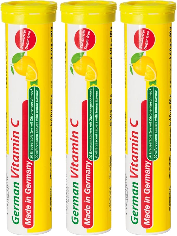 T&D German Vitamin C 180 mg - 60 Vegan Drink Effervescent Tablets - Lemon Lime Flavor - Made in Germany