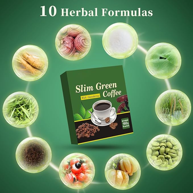 Premium Green Coffee Bean Extract Powder - Gluten-Free Green Coffee Bean Extract Supplements with 10 Natural Health Blends, Instant Coffee, 180g (18 Sachets)