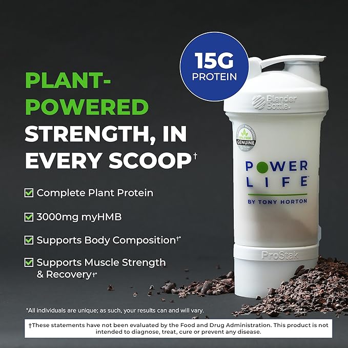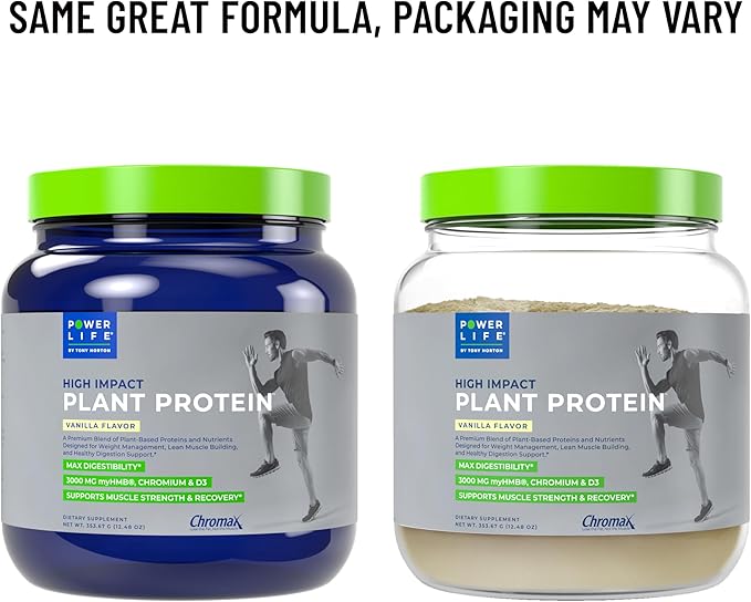 POWERLIFE Tony Horton High Impact Plant Protein Powder with 3000 MG of HMB, Plant-Based, No Sugar Added, Vegan, Keto Friendly, Non-GMO (Vanilla - New Formula)