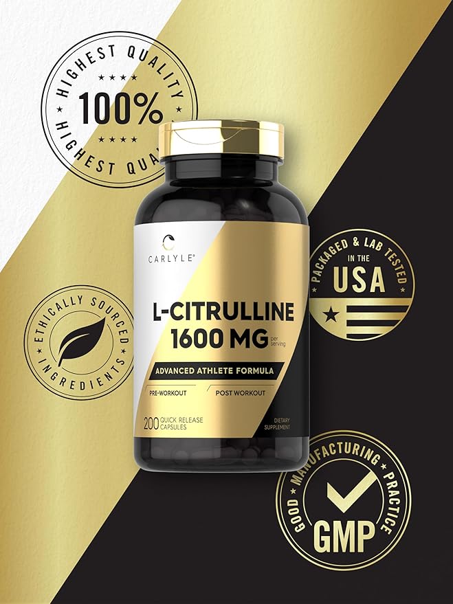Carlyle L Citrulline Capsules 1600mg | 200 Count | Advanced Athlete Formula Non-GMO, Gluten Free Supplement