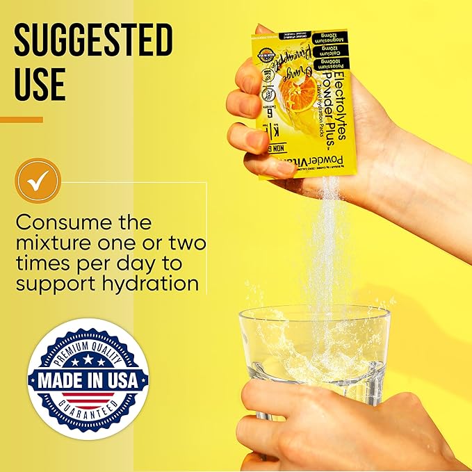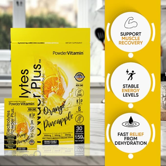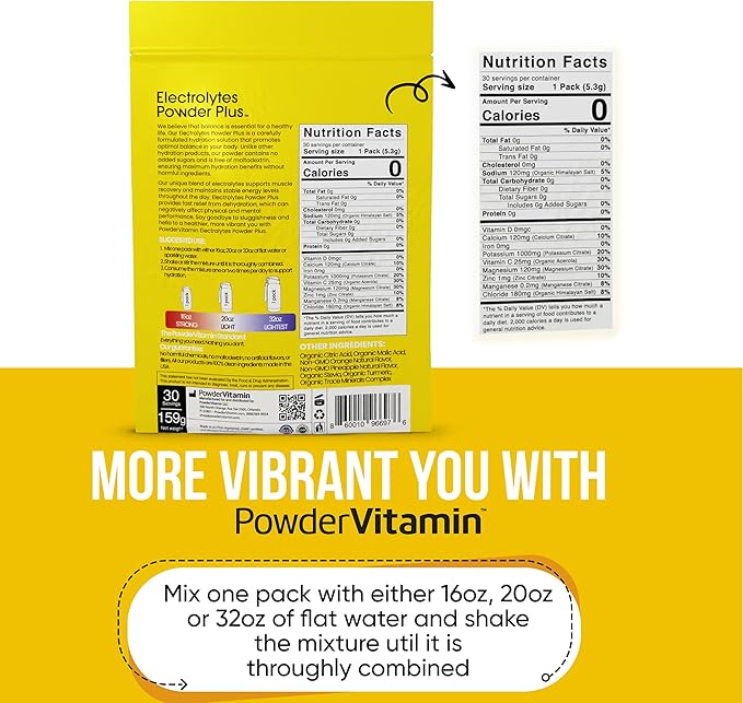 - Keep Yourself Hydrated – Without added calories. PowderVitamin Sugar-Free Electrolyte Powder Plus aids in per workout & post workout muscle recovery with potassium and essential mineral salts.