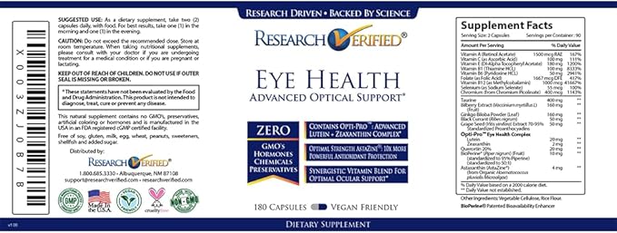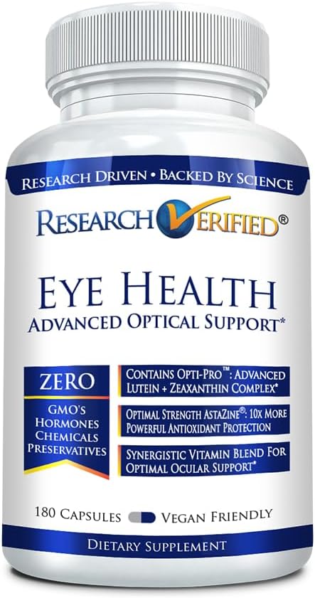 Research Verified Eye Health - Nourish and Protect Eyes and Vision, Support Healthy Retina, Improve Blood Supply to Eyes - Vitamins A, B, C, and E - 180 Capsules - 3 Month Supply - Made in The USA