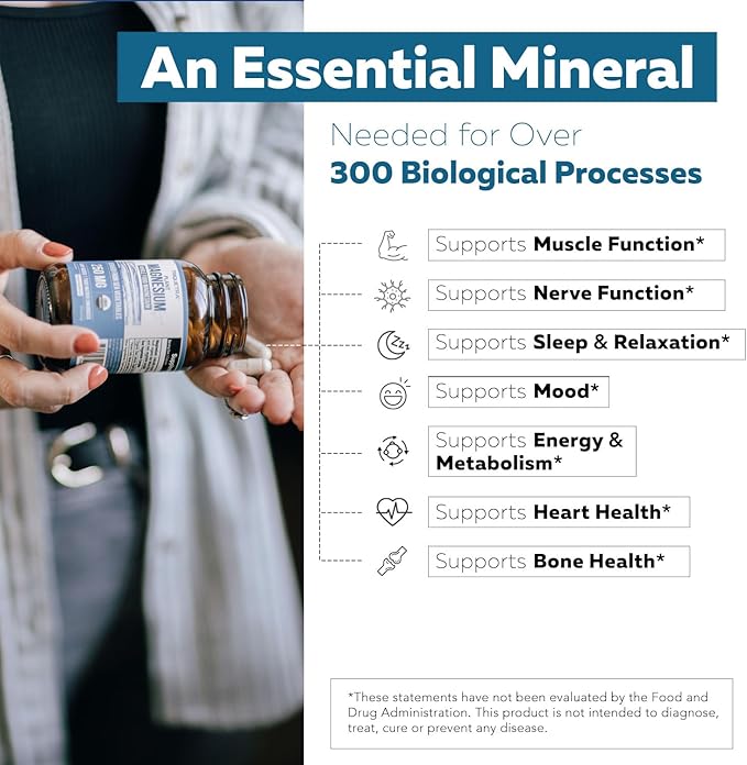 - SUPPORTS TOTAL BODY HEALTH | Magnesium is arguably the most important mineral for health. It is used in over 1,000 biological processes. It supports energy production, restful sleep, metabolism, muscle function, heart health, cell & DNA function, and it supports mood/peace of mind*.