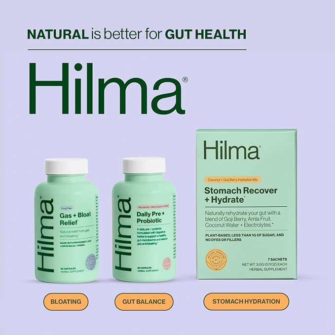 Hilma Daily Pre + Probiotic + Herbs – Support Gut Health with Prebiotics and Probiotics Plus Gas and Bloating Relief for Women & Men – 60 Vegan Capsules