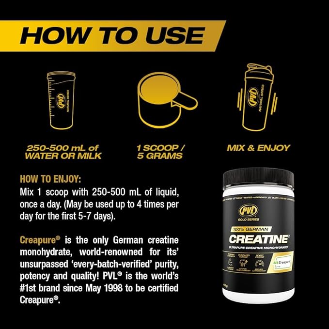 PVL Creapure Creatine - 100% Pure German Creatine monohydrate Powder - 48 Servings - 240 g