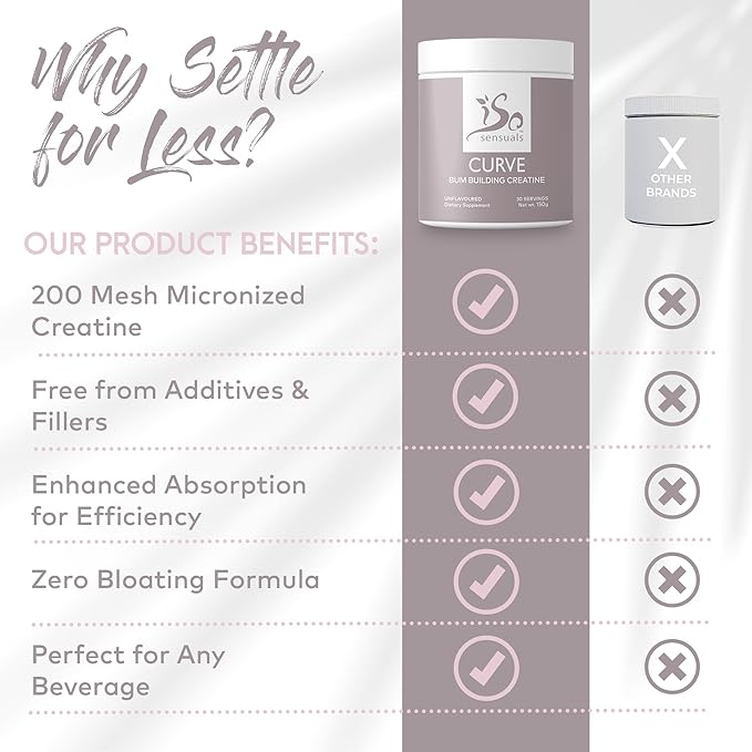 - Unparalleled Absorption: Energize your workout with IsoSensuals CURVE, the micronized creatine designed for creatine women. Its 200 mesh monohydrate formula dissolves effortlessly, delivering booty gains with zero bloating and faster absorption for best results.