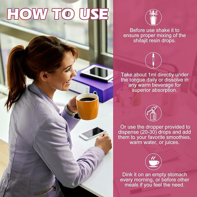 - 【WELL-BEING LIFE OF SHILAJIT SUPPLEMENT】: Shilajit resin liquid drops are also free from any artificial colors, flavors, or fillers, making it a good and trusted choice for those looking for a natural way to boost their health. Just take 1 ml of shilajit resin drops directly daily to provide needed nutrients. Take shilajit resin in warm water or add it to your favorite beverage, preferably with a meal, for optimal results and Easy to absorb and nourish your body for your overall wellness.