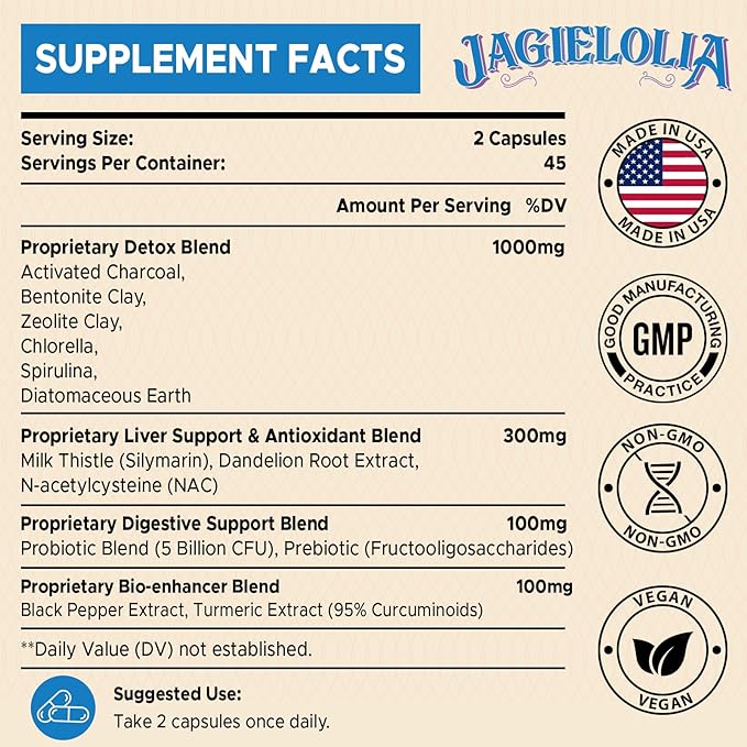 • Potent & Premium Quality: MADE IN USA. Manufactured in a GMP-compliant facility with rigorous third-party testing. Our detox capsule is vegan-friendly, and GMO-Free, with NO artificial additives and NO animal ingredients. Ideal for natural detox and purity.