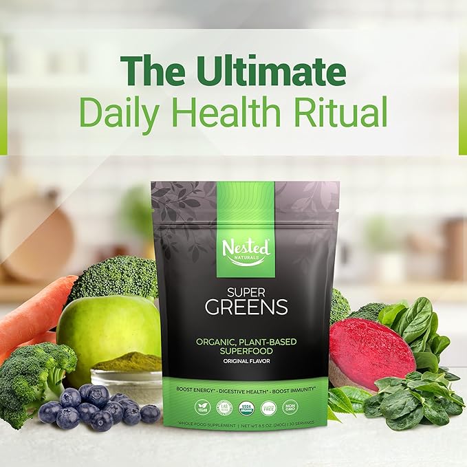 - Certified USDA Organic Greens Powder: Nested Naturals green superfood powder formula is non-GMO, vegan, and certified as organic by the USDA. Not only that, our Super Greens powder is third-party tested to ensure you’re getting only the highest purity and potency of ingredients.