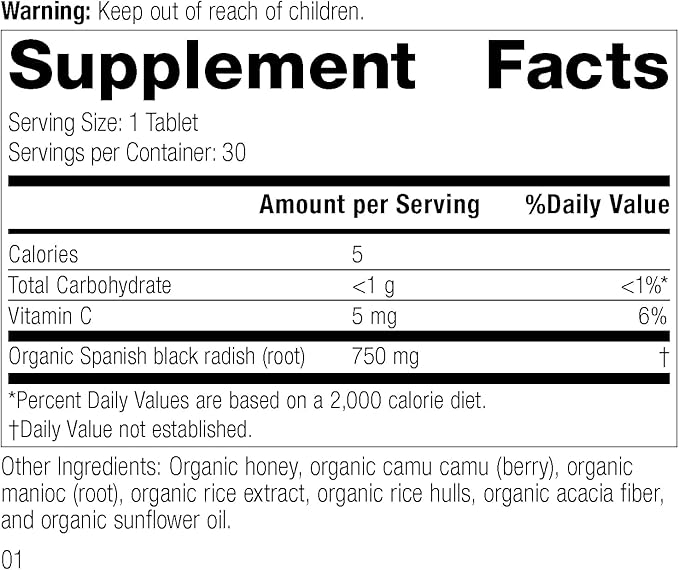 Standard Process Spanish Black Radish - Whole Food Detox, Liver Support, Digestion and Digestive Health, Gallbladder Support with Honey and Vitamin C - Vegetarian, Gluten Free - 30 Tablets
