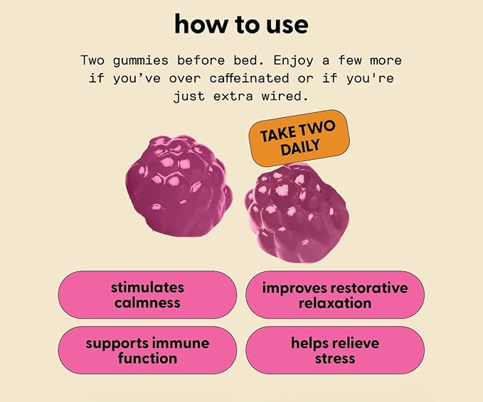 - HOW TO USE - Take two gummies before bed. Use daily for at least 3-4 weeks to unlock the full power of these mushroom gummies for adults to help you fall asleep and stay asleep. Enjoy a few more if you’ve over caffeinated or if you're just extra wired. Thanks to the natural and organic blend of ingredients in these mushroom and magnesium gummies, you can't take too many and you won’t feel groggy when you wake up.