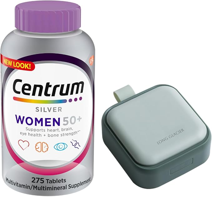 Centrum Silver Women 50+ Multivitamin, 275 Count Bundle with Long Glacier Pill Oragnizer, Small Cute Pill Container for Medicine, Vitamins, Fish Oils, Supplement, Green