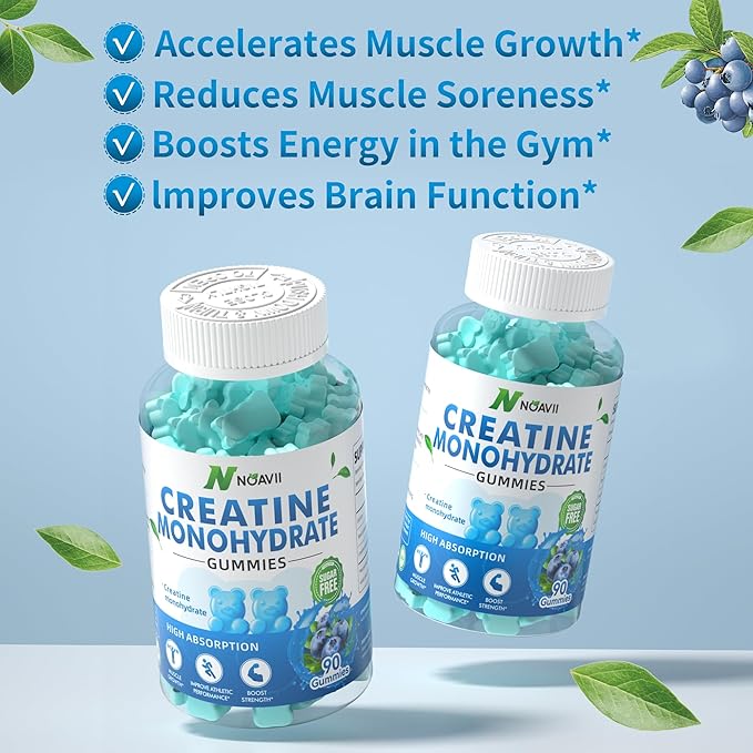 Creatine Monohydrate Gummies 5000mg for Men & Women, Chewables Creatine Monohydrate for Muscle Strength, Muscle Builder, Energy Boost, Pre-Workout Supplement(90 Count)-Blueberry