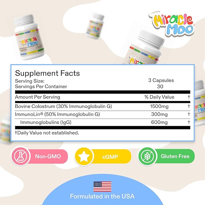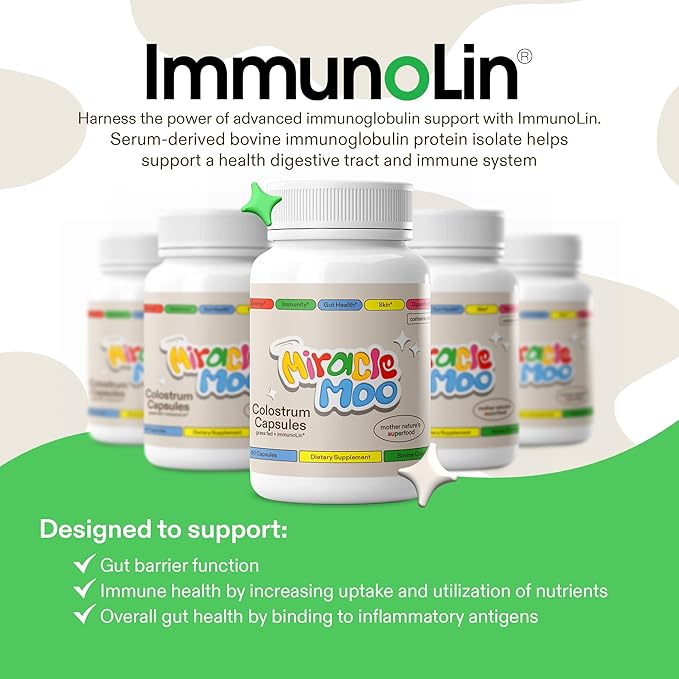 • 🐄 MIRACLE MOO PREMIUM COLOSTRUM: Experience our remarkable colostrum powder with an extraordinary IgG content and ImmunoLin IgGs, vital immunoglobulins, profoundly support immunity, fortify the gut, and foster holistic well-being. Embrace utmost quality with our elite colostrum, a promise of proven outcomes.