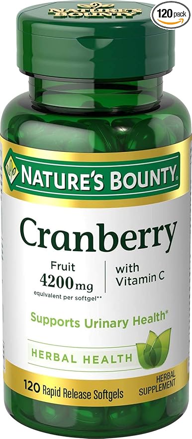 - Nature's Bounty Cranberry Fruit 4200 mg, Plus Vitamin C, 120Softgels..
