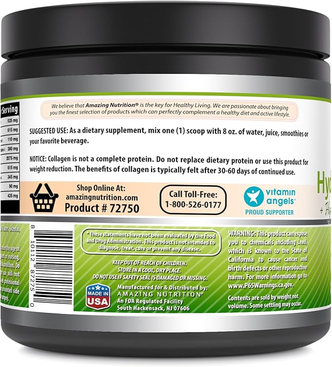 Amazing Formulas Hydrolyzed Collagen with Hyaluronic Acid & Multivitamins Supplement | 30 Servings Powder | 660 Grams | Japanese Matcha Flavor